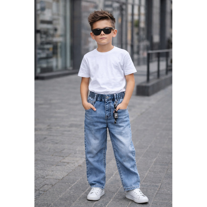 Джинсы для мальчика Happy Howse мом на резинке 3–12 лет Польша,122-128, Голубой