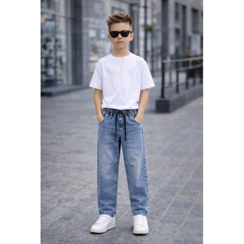 Джинсы для мальчика Happy Howse мом скейтеры 7-16 лет на резинке свободные подростковые джинсы, Голубой 146-152
