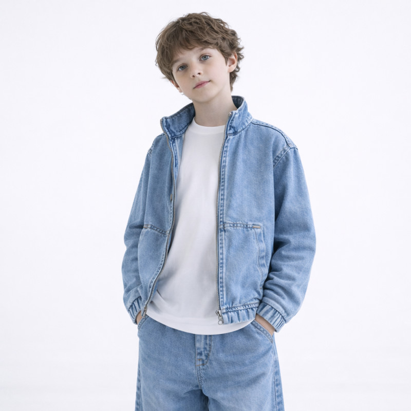 Стильна джинсова куртка Happy House для хлопчиків та підлітків 7-16 років. Модель виконана з м'якого деніму з високим вмістом бавовни, завдяки чому куртка комфортна у повсякденному носінні та добре тримає форму. Куртка має застібку на блискавці, зручні бічні кишені та акуратний комір-стійку. Манжети та низ виконані на еластичній гумці, що забезпечує комфортну посадку та сучасний стиль. Вільний крій робить модель зручною для активного дня. Куртка відмінно поєднується з джинсами, спортивними брюками та кросівками. Підходить для школи, прогулянок та повсякденного гардеробу підлітка. Характеристики Бренд: Happy House Тип: джинсова куртка Вік: 7-16 років Застібка: блискавка Кишені: бічні Манжети: гумка Низ куртки: гумка Крій: вільний Країна бренду: Польща Склад тканини cotton - 85% polyester - 15%