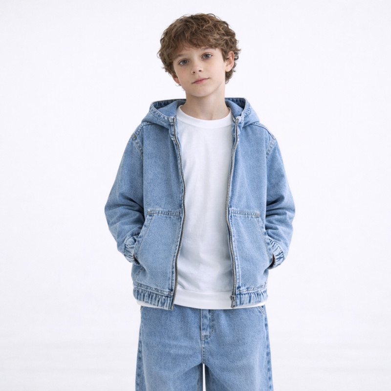 Стильна джинсова куртка Happy House для хлопчиків та підлітків. Модель поєднує сучасний дизайн і комфорт, відмінно підходить для повсякденного носіння. Куртка виконана з якісного деніму з високим вмістом натуральної бавовни. Матеріал добре тримає форму, приємний до тіла та стійкий до зносу. Модель оснащена каптуром, зручною блискавкою та місткими кишенями, що робить куртку практичною для школи, прогулянок та активного відпочинку. Манжети рукавів та нижня частина куртки виконані на резинці, що забезпечує зручну посадку та комфорт під час руху. Куртка легко поєднується з джинсами, спортивними штанами та базовим одягом. Характеристики Бренд: Happy House Тип: джинсова куртка для хлопчика Вік: 7–16 років Застібка: блискавка Капюшон: є Кишені: бічні Манжети: на гумці Низ куртки: на резинці Склад тканини: 85% коттон 15% поліестер