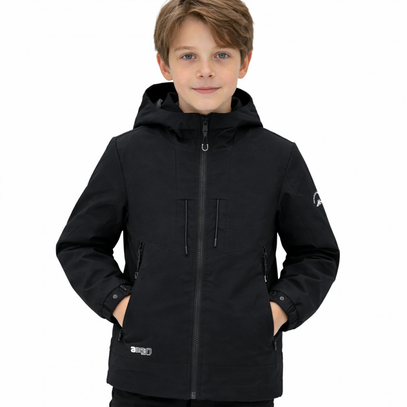 Куртка ветровка детская для мальчика Happy House демисезонная с капюшоном водоотталкивающая 5–14 лет,Черный,  134-140