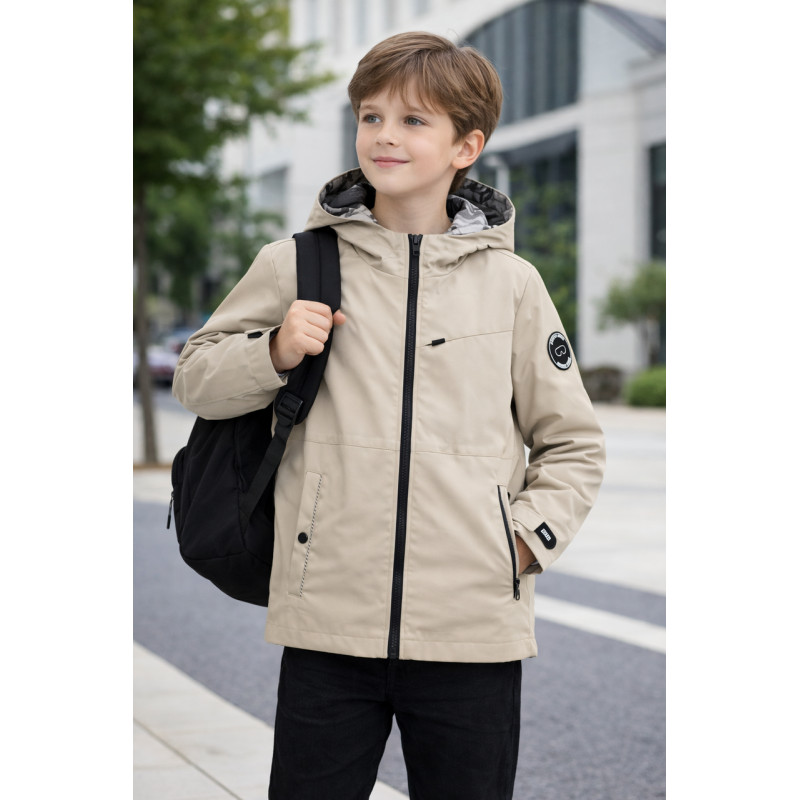 Куртка двухсторонняя Happy House для мальчика 5-14 лет легкая ветровка с капюшоном,Бежевый, 122-128