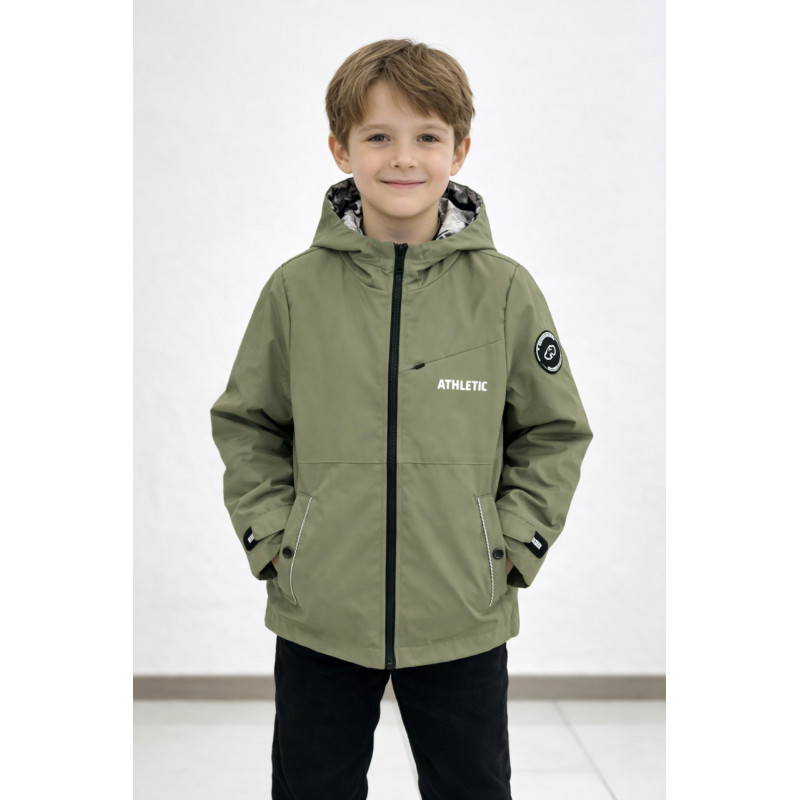 Куртка двухсторонняя Happy House для мальчика 5-14 лет легкая ветровка с капюшоном,Оливковый, 110-116