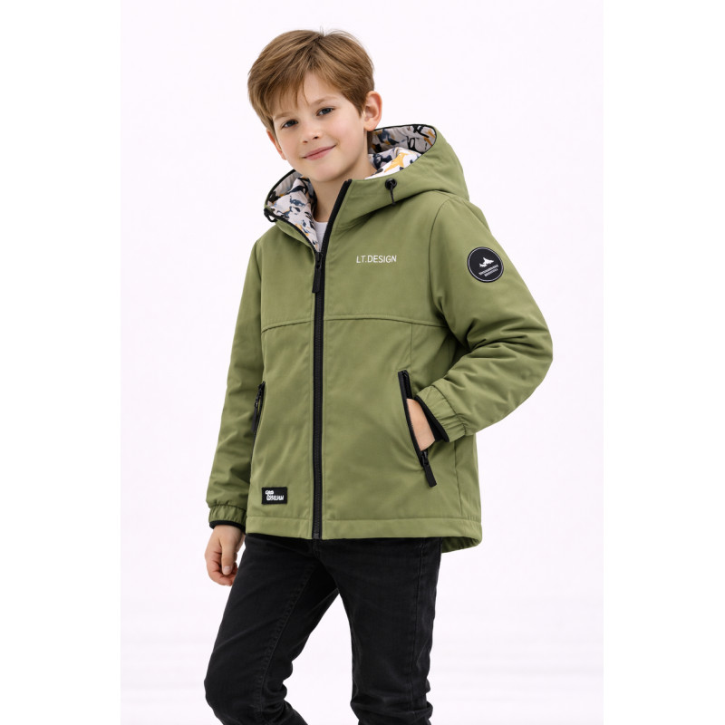 Куртка демисезонная двухсторонняя Happy House для мальчика 5-14 лет ветровка детская легкая водонепроницаемая с капюшоном,Зеленый,