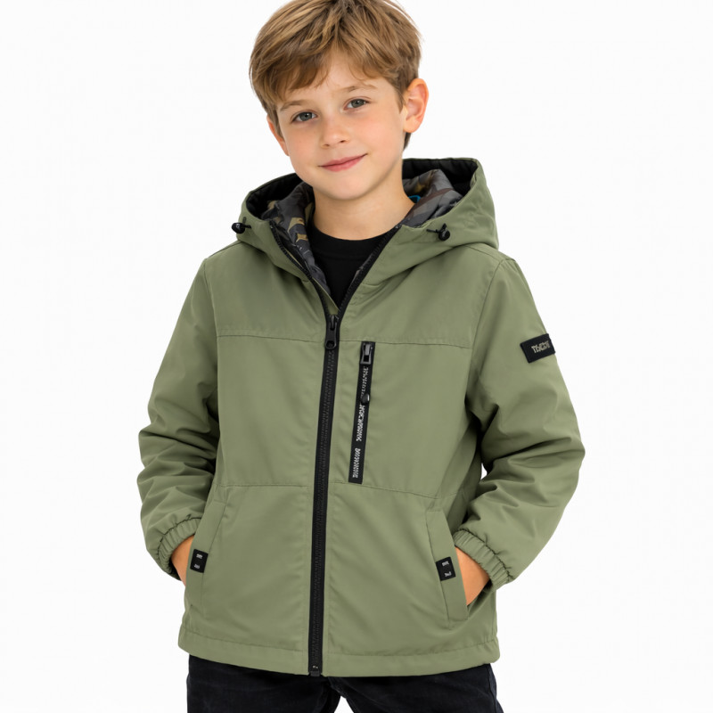 Куртка демисезонная двусторонняя для мальчика Happy House 2 в 1 с капюшоном водоотталкивающая 4-10 лет, 104, Оливковый