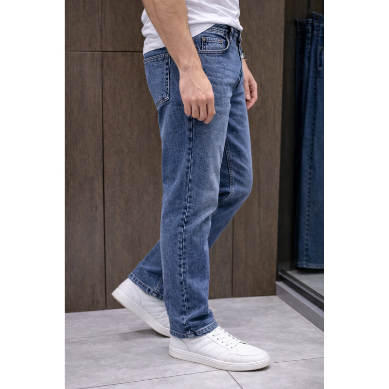 Чоловічі джинси Franco Lucci з якісного турецького деніму. Склад 95% бавовна, 5% еластан — комфортна посадка та свобода рухів. Трохи звужений крій підкреслює силует. Всесезонна модель для повсякденного носіння, добре тримає форму та легко поєднується з будь-яким одягом.